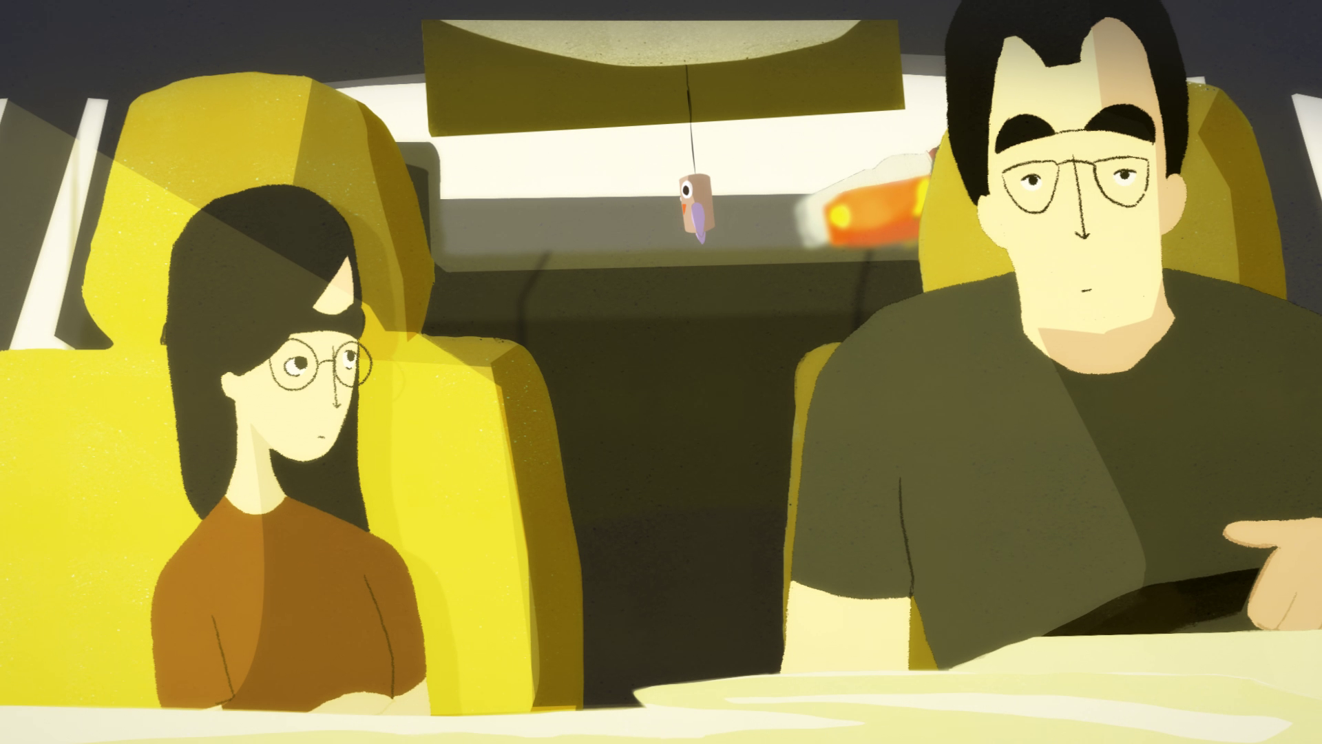 Short animated film The relationship between a young girl and her father is being reflected as they spend time together in a car, driving on an endless road.